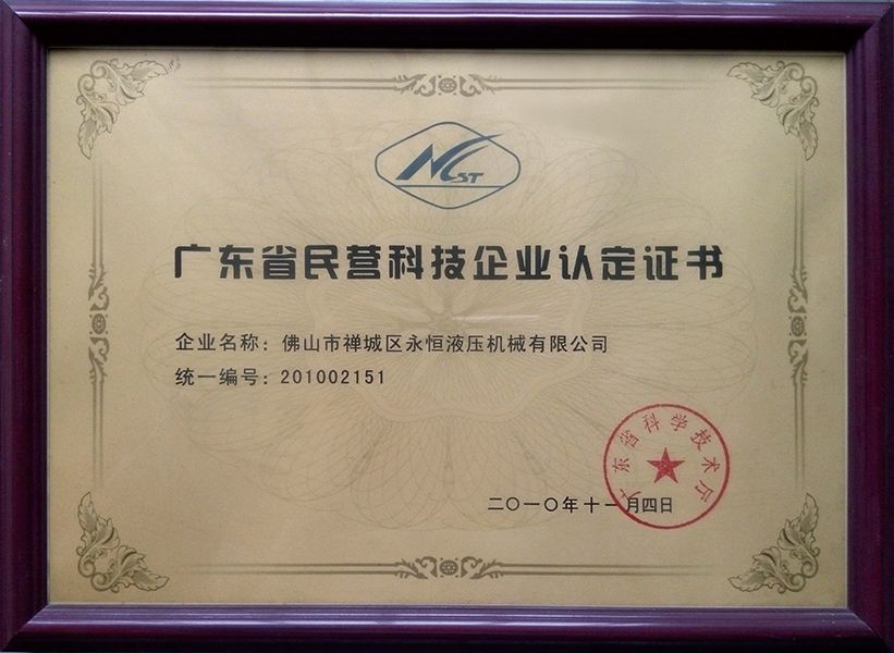 广东省民营科技企业认定证书